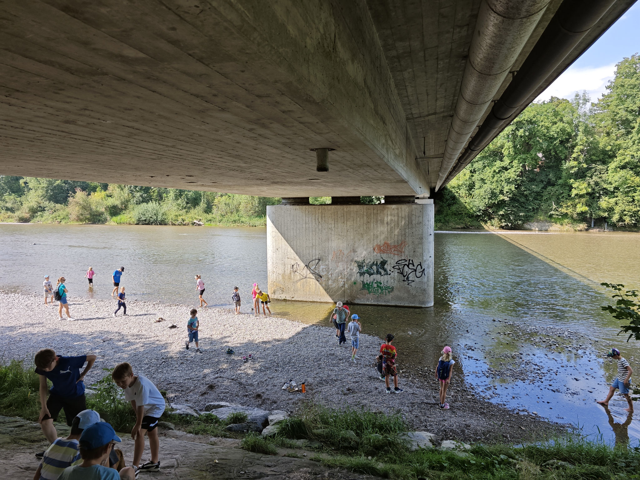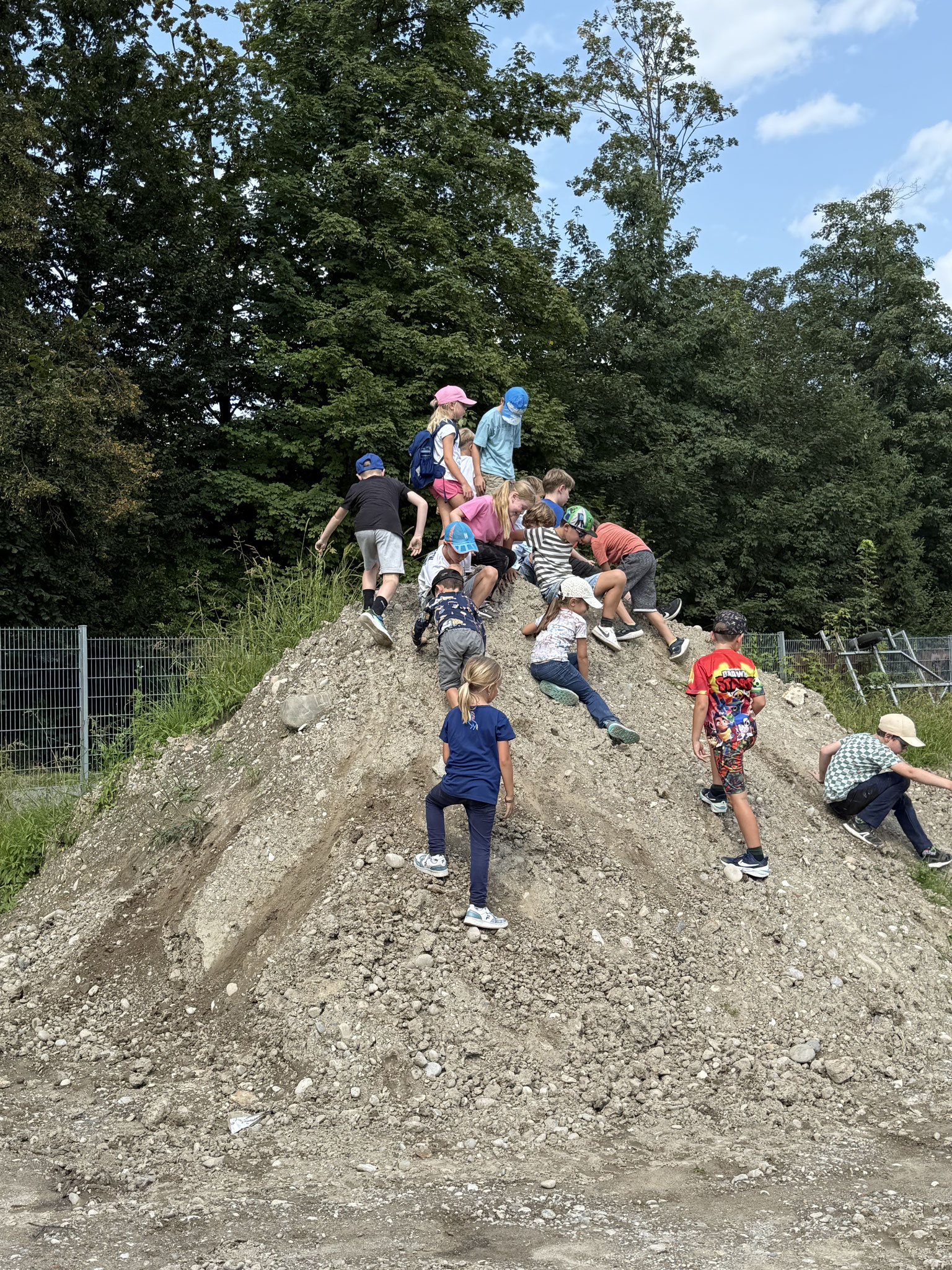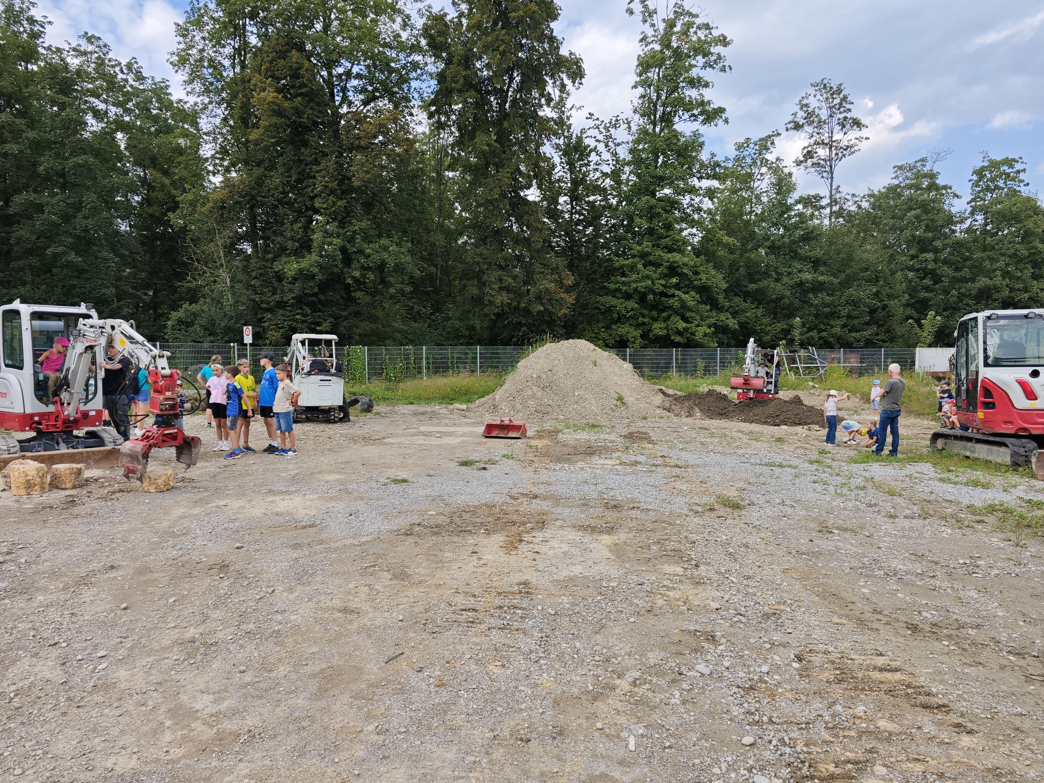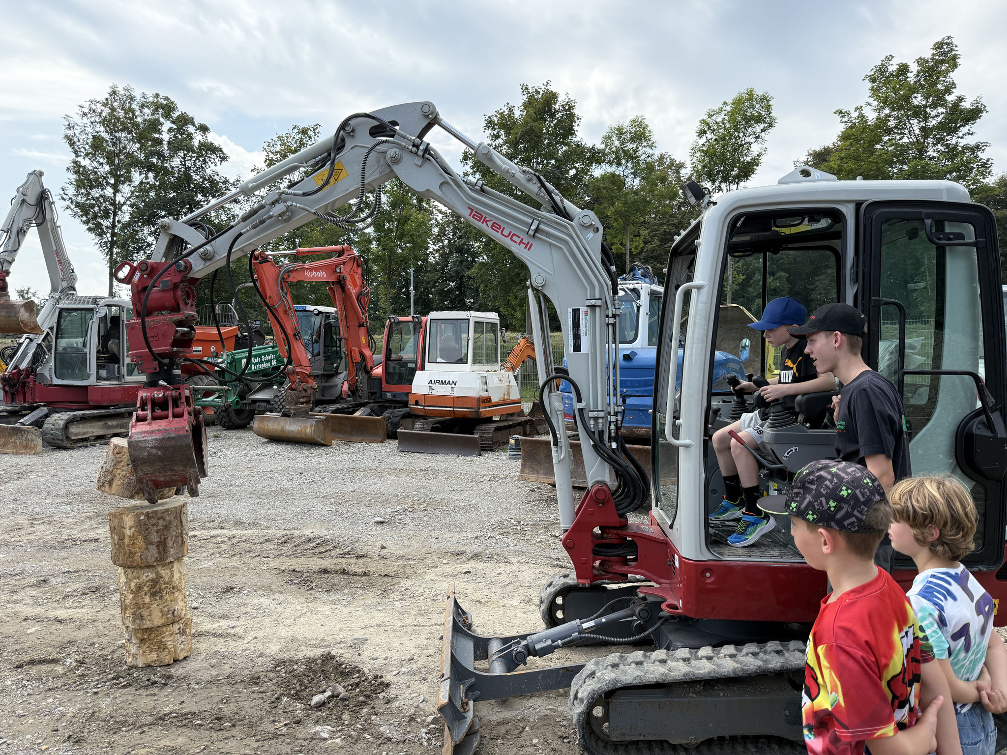 Die Gruppe wurde auf dem Firmengelände herzlich empfangen. Nach einer kurzen Einführung in den Betrieb wartete das grosse Highlight: Die Kinder konnten selbst in einen Bagger steigen und unter Anleitung ausprobieren, wie sich das schwere Fahrzeug steuern lässt.